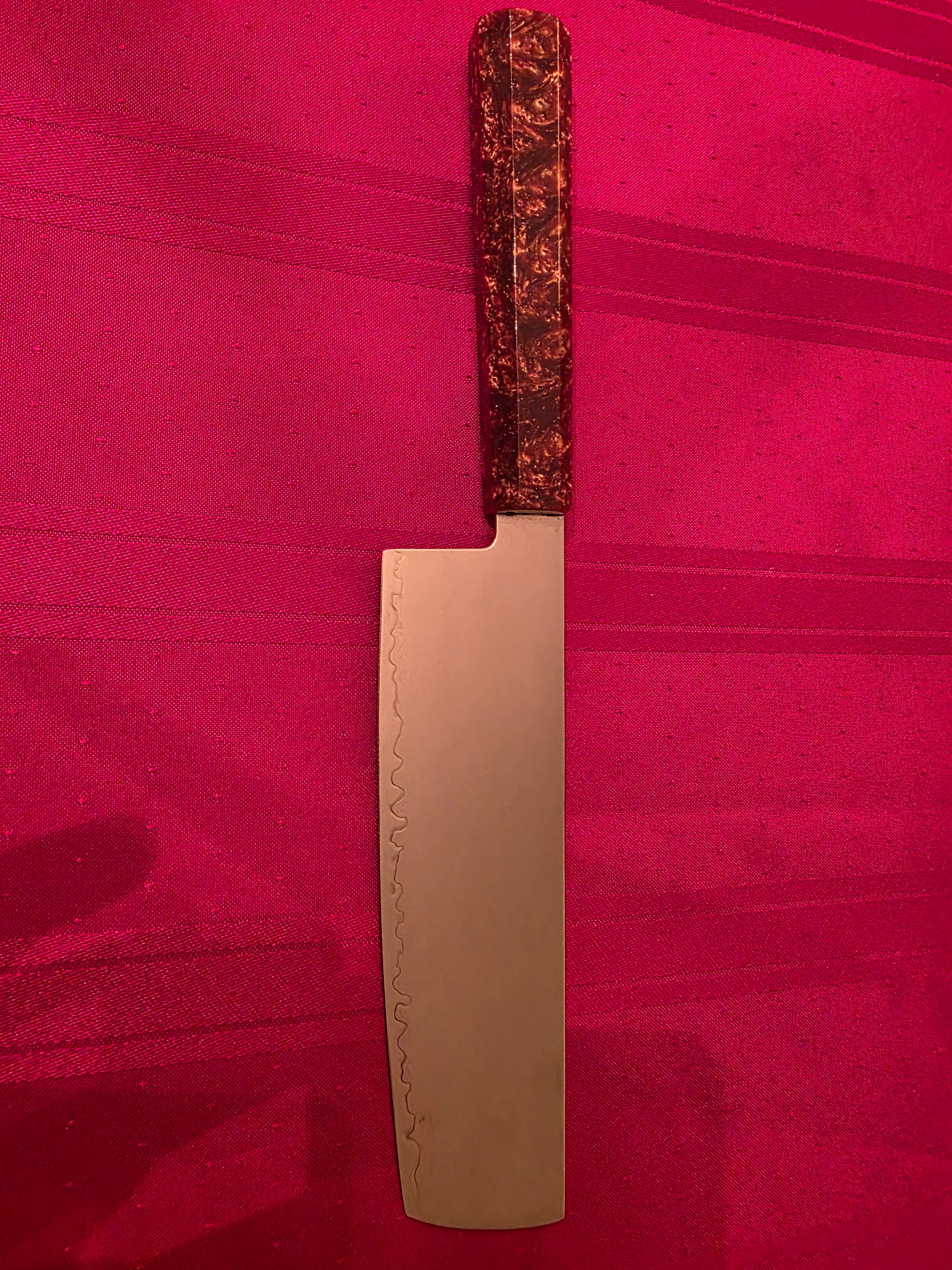 Nakiri knives are purpose-built for vegetables, and this one absolutely leans into that role.